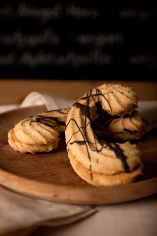 38%*VOLLKORN-DINKELMEHL, *BUTTER, *Honig, *EIER, *Fruchtfüllung( Ribisel, Agavendicksaft, Geliermittel: Apfelpektin, Zitronensaft), *Schokolade [Kakaomasse (Kakao: 70% mind.), Kakaobutter, Rohrzucker, Emulgator: SOJALECITHIN]....*aus biologischen Anbau