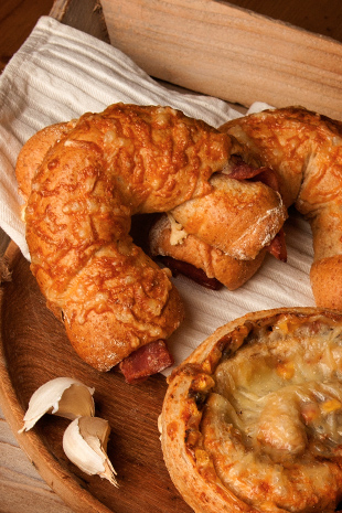 *VOLLKORN-WEIZENMEHL, Wasser, *Hefe, *Maismalz, Salz, 5%*Schinken [(Schweineschlögl(91,5%), Wasser, Pökelsalz, Kräuter, Gewürze, Rohrohrzucker)], * KÄSE....*aus biologischen Anbau