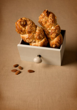 48%*VOLLKORN-DINKELMEHL, *BUTTER, *Honig, Wasser, *EIER, *Hefe, *MANDEL, *Vanille....*aus biologischen Anbau
