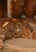 63%*VOLLKORN-BRÖSEL (VOLLKORN-DINKELMEHL, Wasser, *Hefe, Salz), *Honig, *WALNÜSSE, *Rum, *Vanille....*aus biologischen ...