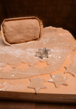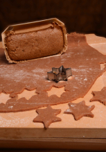 *VOLLKORN-DINKELMEHL, *Honig, *MILCH, *EIER, Backtriebmittel: (Pottasche), *Gewürze, *MANDEL, *Trockenfrüchte (Rosinen, ...