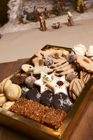*WEIZENMEHL, *Fett pflanzlich (Sonnenbl.), *Fruchtfülle (Marillen, Himbeeren, Agavendicksaft, Geliermittel:Apfelpektin, Zitronensaft), *Zucker, *MILCH, *EIER, *Schokolade [Kakaomasse (Kakao: 70% mind.), Kakaobutter, Rohrzucker, Emulgator: SOJALECITHIN], *WALNÜSSE, *Mohn, *Backtriebmittel:(Pottasche, Reinweinsteinpulver, Natron), *Rum, *PISTAZIEN, *Gewürze....*aus biologischen Anbau