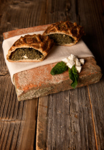 *VOLLKORN-WEIZENMEHL, Wasser, 10%*Spinat, *Schafskäse, *SAUERRAHM, *BUTTER, *Hefe, *Maismalz, Salz, *Kürbiskerne, ...