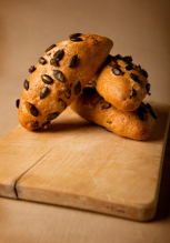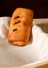 46%*VOLLKORN-DINKELMEHL, *BUTTER, *Honig, *MILCH, *EIER, *Hefe, *Rosinen, Salz, *Vanille....*aus biologischen Anbau