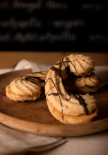 28%*VOLLKORN-KHORASAN-MEHL, *BUTTER, *Honig, *EIER, *MANDEL, *Schokolade[Kakaomasse (Kakao: 70% mind.), Kakaobutter, ...