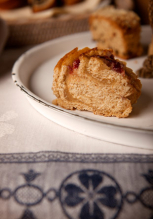 *VOLLKORN-DINKELMEHL, Wasser, *BUTTER, *Honig, *EIER, *Hefe, 20%*Fruchtfüllung (Himbeeren, Agavendicksaft, ...