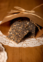 *Dinkel-,*KHORASAN-Mehl,*Honig, *Eier, *Schokolade, *Nüsse, *Zuckerglasur, Rum….*aus biologischen Anbau